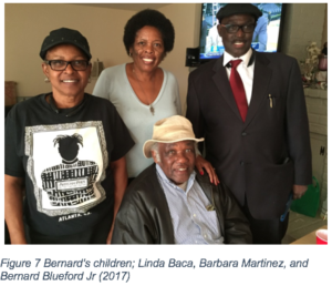 Bernard is survived by 5 grandchildren Kimberly and Kelly Martinez (deceased), Danielle and Dorel Baca, and Stephon Blueford and 7 great grandchildren. He is survived by 1 brother, Edward and preceded by 1 brother, Harmon(Leola) and 4 sisters: Bertha Williams, BellBullock, Jerline Williams, and Genieve Fowler). He will join his friend of 40 years, Walt Fries, for morning coffee.